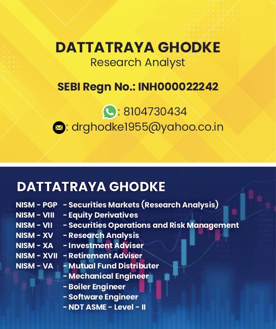 Welcome! I'm Dattatraya Ghodke, a dedicated Research Analyst with a passion for uncovering market trends, analyzing data, and delivering actionable insights. With 15 years of experience in Market Analysis, Trading, etc. I help businesses and individuals make informed, data-driven decisions.